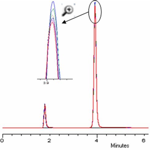 的電子壓力脈動抑制設(shè)計的雙柱塞輸送泵,具有極高的流量精度,保證了更好的分析重復(fù)性,連續(xù)六次進樣后保留時間RSD =0.023 %。