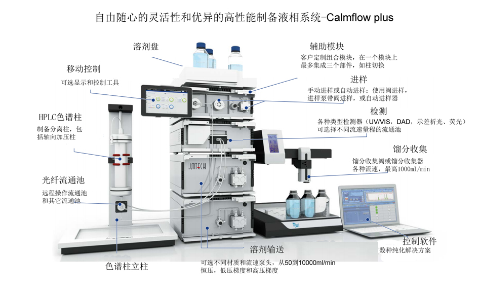 德國LUMTECHTM品牌Calmflow plus制備液相具有靈活性,高1000ml/min,100g/天,單柱制備流程。