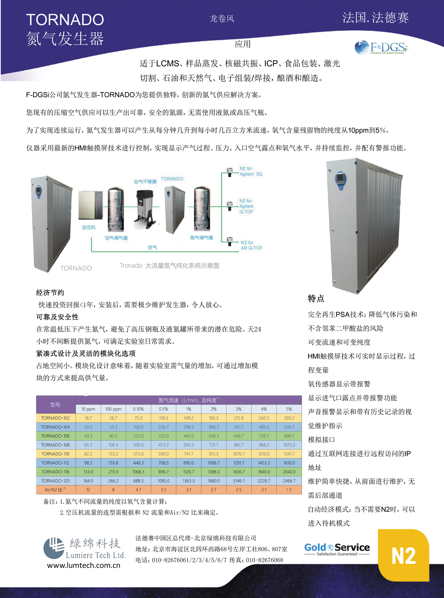 TORNADO可調(diào)流速可調(diào)純度大流量氮?dú)獍l(fā)生器