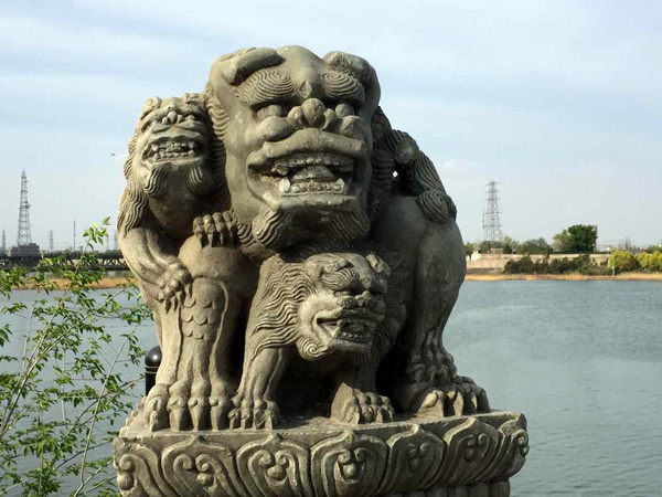 北京有句歇后語:“盧溝橋的獅子——數(shù)不清。”這座獅子多得數(shù)不清的橋,建于1189年。這是一座聯(lián)拱石橋,總長約266米,有281根望柱,每根柱子上都雕著獅子。要不仔細(xì)數(shù),真是數(shù)不清呢。