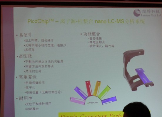 綠綿科技李斌做“與質(zhì)譜相關(guān)產(chǎn)品和技術(shù)”的報告,綠綿科技在近推出的液質(zhì)用大流量氮氣發(fā)生器(產(chǎn)品信息見http://www.replenishrestore.com/products/product_id-82.html )、DART直接進樣實時離子源(產(chǎn)品信息見http://www.replenishrestore.com/products/product_id-80.html )、質(zhì)譜數(shù)據(jù)解析處理系統(tǒng)Massworks(產(chǎn)品信息見http://www.replenishrestore.com/products/product_id-65.html)、專用納噴技術(shù)PicoChip產(chǎn)品(http://www.replenishrestore.com/news/n_id-241.html ),廣泛應用各儀器廠家的質(zhì)譜儀器。