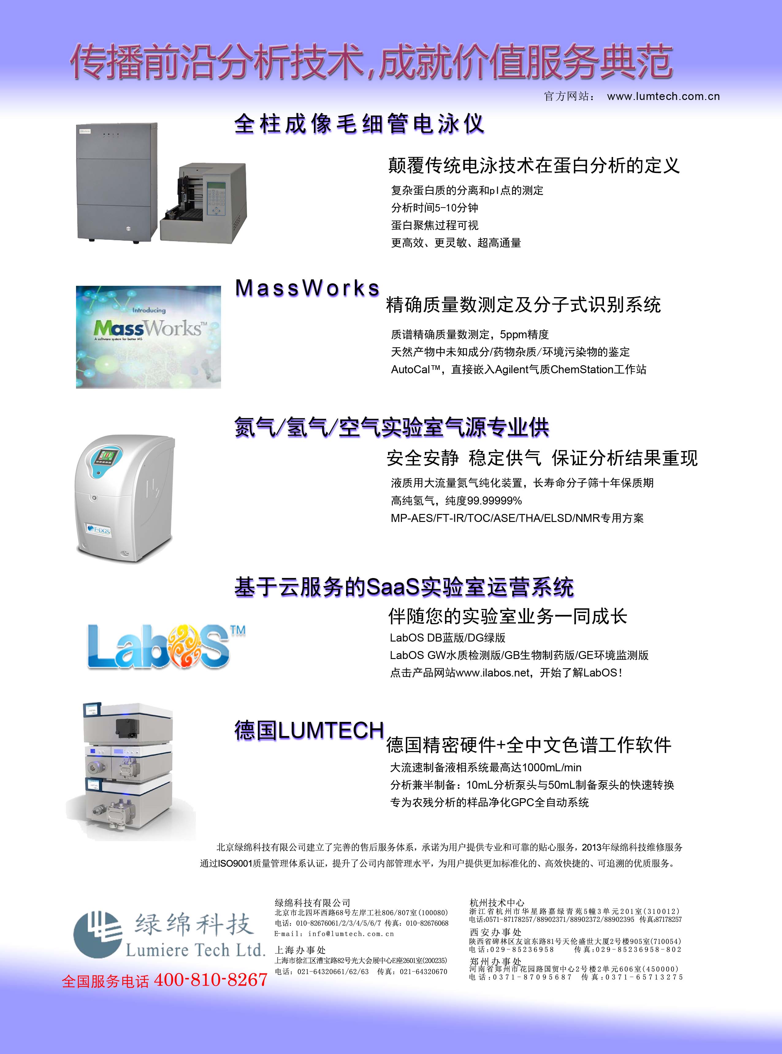 北京綠綿科技有限公司(簡稱:綠綿科技)以體現(xiàn)客戶服務價值為宗旨,以專業(yè)精神和技能為廣大實驗室分析工作者提供樣品前處理、樣品制備及分析、實驗數(shù)據(jù)精確分析和管理的全面解決方案,致力于協(xié)助客戶提高分析檢測的效率和水平。主要代理產(chǎn)品聯(lián)系電話:010-82676061/2/3/4/5/6/7/8