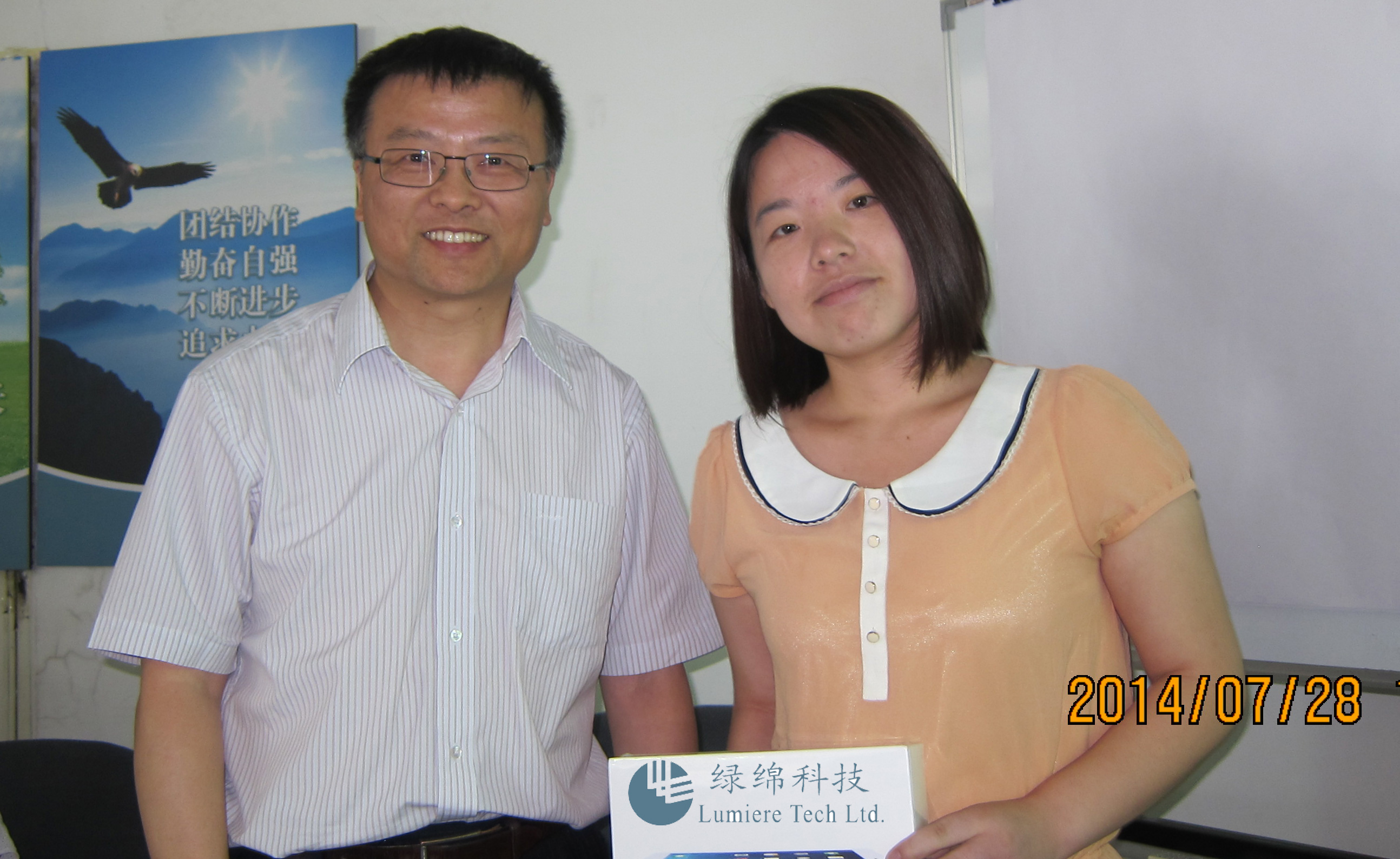 2014年7月28-29日,綠綿科技鄭州、杭州、西安、上海辦事處銷售集中在北京進行半年總結(jié),歐陽偉民總經(jīng)理總結(jié)上半年業(yè)績,并對2013年新產(chǎn)品推廣者補發(fā)廠家贈送的iPad獎品,對2014年新產(chǎn)品推廣達標員工進行獎品發(fā)放。綠綿科技對銷售產(chǎn)品進行培訓(xùn)總結(jié)、考核,大家增強了信心。