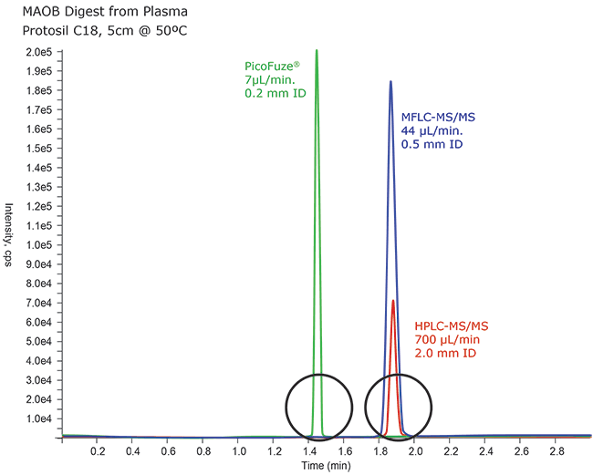· PicoFuze消除了柱后體積,峰形和色譜真實度被保留。你可以更多關注于重要的分離而不是長管路和多連接。