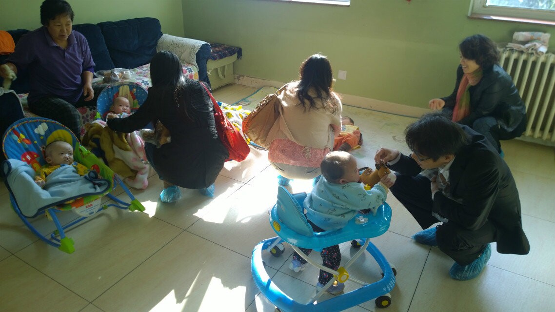 牧羊地兒童村的老師接待了我們,向我們介紹了兒童村的基本情況,并帶領(lǐng)我們參觀了兒童村。兒童村由古色古香的紅色圍墻圍繞,里面有10幾棟大小不一的樓房。他們把一棟樓房稱為一個(gè)“家”,每個(gè)家庭都有“媽媽”來照顧這些傷殘孩子。同時(shí),兒童村基于孩子歲數(shù)的大小為他們開設(shè)不同的課程,請老師為他們上課,讓他們可以享受到和正常孩子一樣的教育。