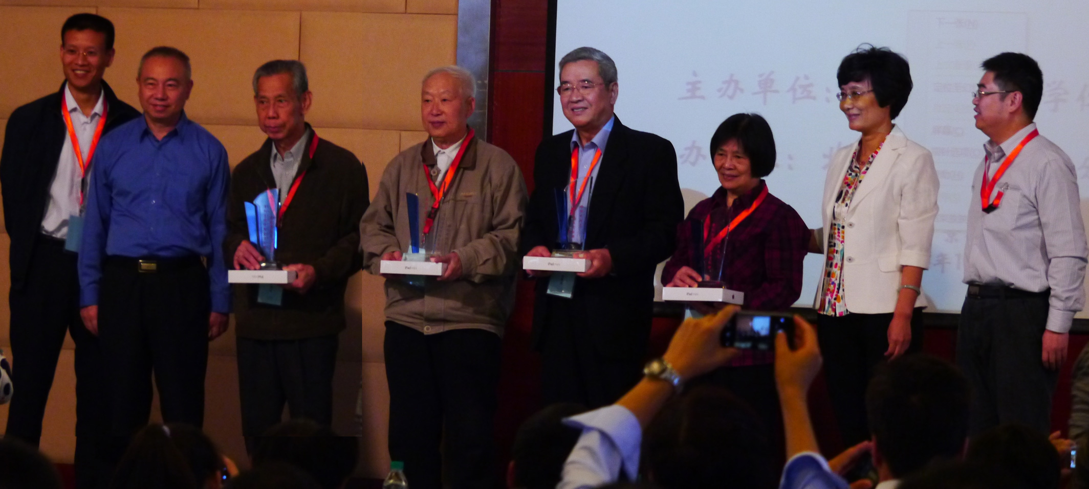 本屆大會專門為五位大會名譽(yù)主席設(shè)置了一個(gè)杰出貢獻(xiàn)獎項(xiàng),這五位質(zhì)譜老前輩已從事質(zhì)譜研究、教學(xué)40余年,雖然都已年過或年近80但依舊活躍在質(zhì)譜領(lǐng)域的 一線,繼續(xù)進(jìn)行科研研究,無私分享科研經(jīng)驗(yàn),并為歷屆有機(jī)質(zhì)譜學(xué)術(shù)會的成功舉辦提供了巨大貢獻(xiàn),他們分別是王光輝教授、康致泉教授、楊松成教授、蘇煥華教授以及盛龍生教授(因故缺席)。