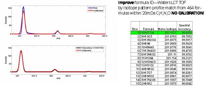 例1:提高分子式識(shí)別能力—Waters LCT TOF (不需要校正)