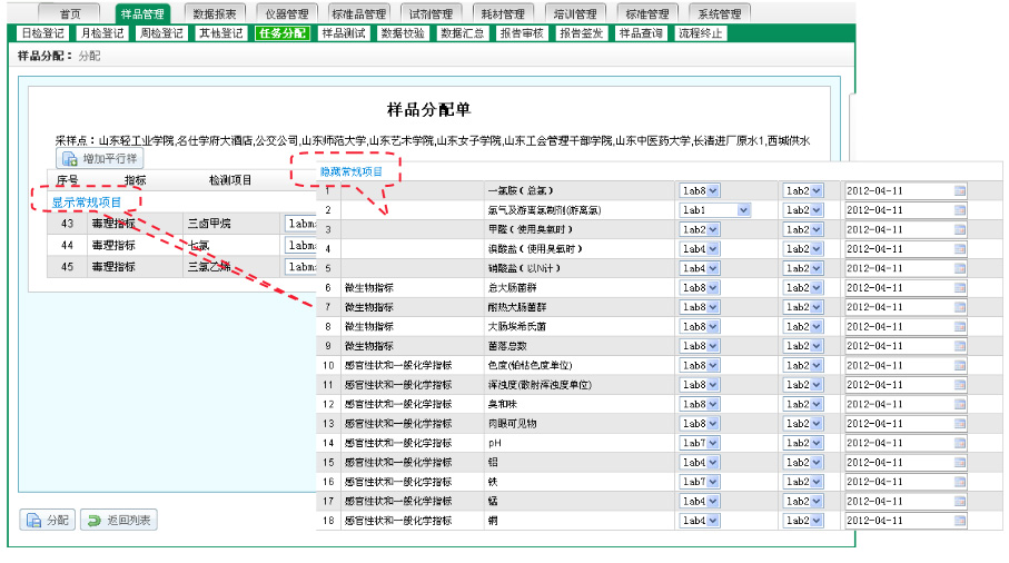 (4)對(duì)于常規(guī)檢測(cè)項(xiàng)目,加強(qiáng)了大批量分配任務(wù)、自動(dòng)匯總等功能。