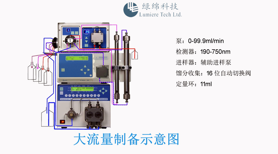 綠綿科技在展商儀器秀的活動(dòng)中介紹了LUMTECH全新的制備液相系統(tǒng),多種流量配置方案滿足不同用戶的制備需求、輔助進(jìn)樣泵設(shè)計(jì)滿足大體積進(jìn)樣、自動(dòng)餾分收集閥系統(tǒng)。