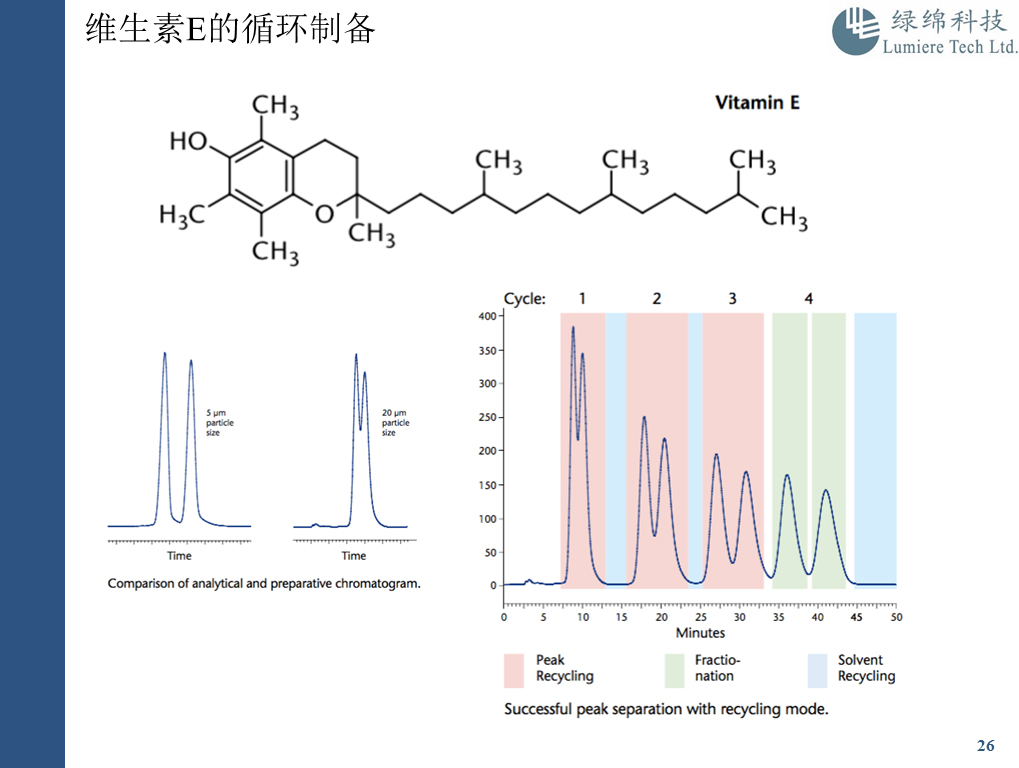 (大流量制備以及循環(huán)制備是LUMTECH制備液相的優(yōu)勢,先進(jìn)的循環(huán)制備的技術(shù)可以得到純度更高的分離。)