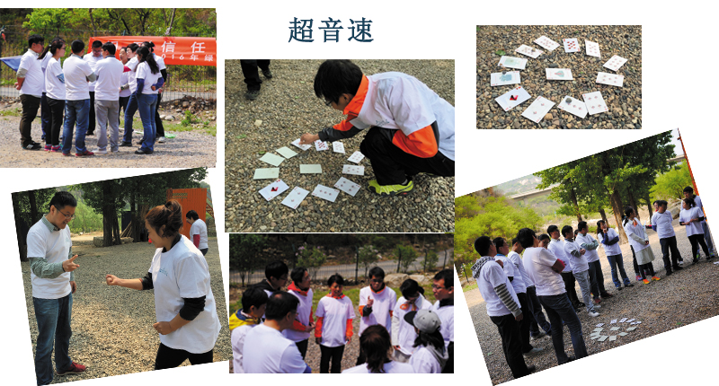 在超音速項目中,在規(guī)定的區(qū)域內(nèi)無須依次擺放扣著數(shù)字面的撲克牌,活動開始后,小組成員依次跑到指定區(qū)域,在規(guī)定的時間內(nèi)按照大小的順序翻開撲克牌,看哪一小組首先完成。在第二次比賽中,在路上增加猜拳贏者通過的“攔路”難度,兩個小組成員相互配合,制定合理正確的計劃,越是接近勝利完成的時候,更考驗(yàn)隊員團(tuán)隊配合的能力!