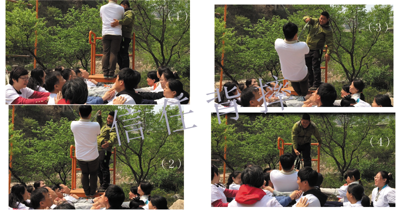 信任背摔,小組成員依次自1.4米左右高的平臺上,按照教練要求動作,準(zhǔn)備完畢,直身向后倒去,小組其他成員在其身后做雙手做保護(hù),接住倒下的學(xué)員。所有的隊員手牽手結(jié)成了一張網(wǎng),親密無間緊緊相連的,后面還有隊友用手頂住接手作第二道保障。“準(zhǔn)備好了嗎” ? “時刻準(zhǔn)備著,請相信我們,3、 2 、 1”......那一刻有一股比疑慮更強(qiáng)烈的信念:我們都是朝夕相處的兄弟,一起吃苦摔打,一起歡笑流淚,“不拋棄,不放棄”。這是把自己一切交給隊友,相信和信任,增進(jìn)了隊員間的感情。