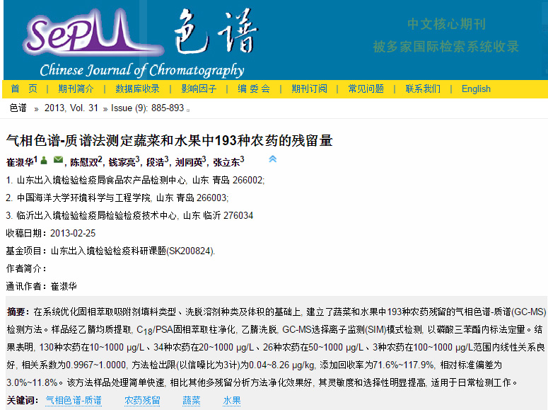 《氣相色譜-質(zhì)譜法測(cè)定蔬菜和水果中193種農(nóng)藥的殘留量》使用了TurboVap_LV型樣品蒸發(fā)濃縮工作站
