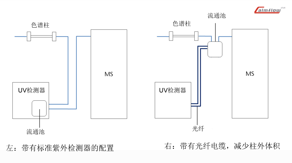 LUMTECH Calmflow plus 納流流通池帶有光纖接頭,與紫外檢測器結(jié)合,適于低流速UV檢測,尤其是與MS質(zhì)譜檢測器。流通池直接在色譜柱后端以便減少柱外體積,從而提高峰形。