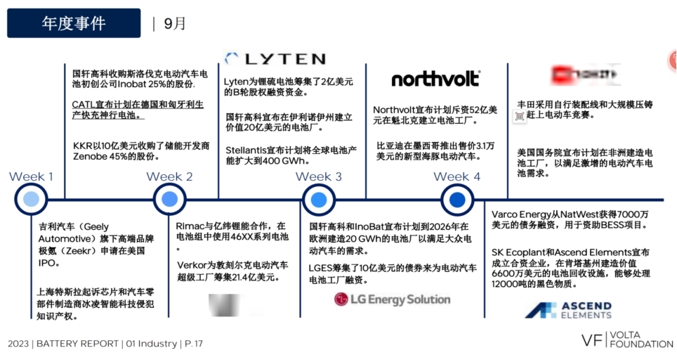 2023年是全球電池行業(yè)持續(xù)增長和調(diào)整的一年——電動乘用車銷量首次突破1000萬輛,盡管利率較高,但同比增長32%。過去一年,新電動汽車的平均價格下降了25%,部分原因是制造商爭奪市場份額而引發(fā)的電動汽車“價格戰(zhàn)”,使得新電動汽車的平均價格僅比新車整體市場高出4%。鋰的成本自2022年底達到峰值以來已經(jīng)下降了80%,這引起了礦業(yè)公司的恐慌,但也導致電池電芯價格降低了16%至107美元/KWh。