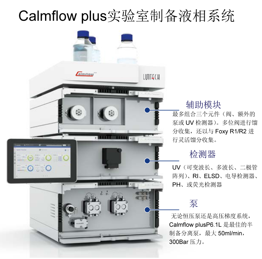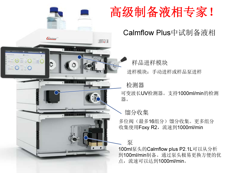 德國LUMTECHTM品牌Calmflow plus制備液相具有靈活性,高1000ml/min,100g/天,單柱制備流程。